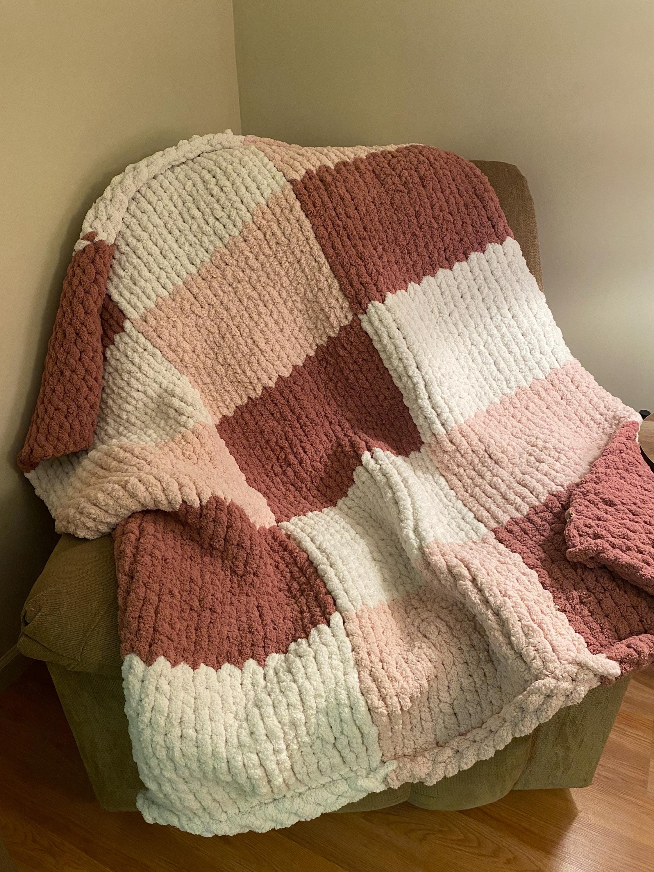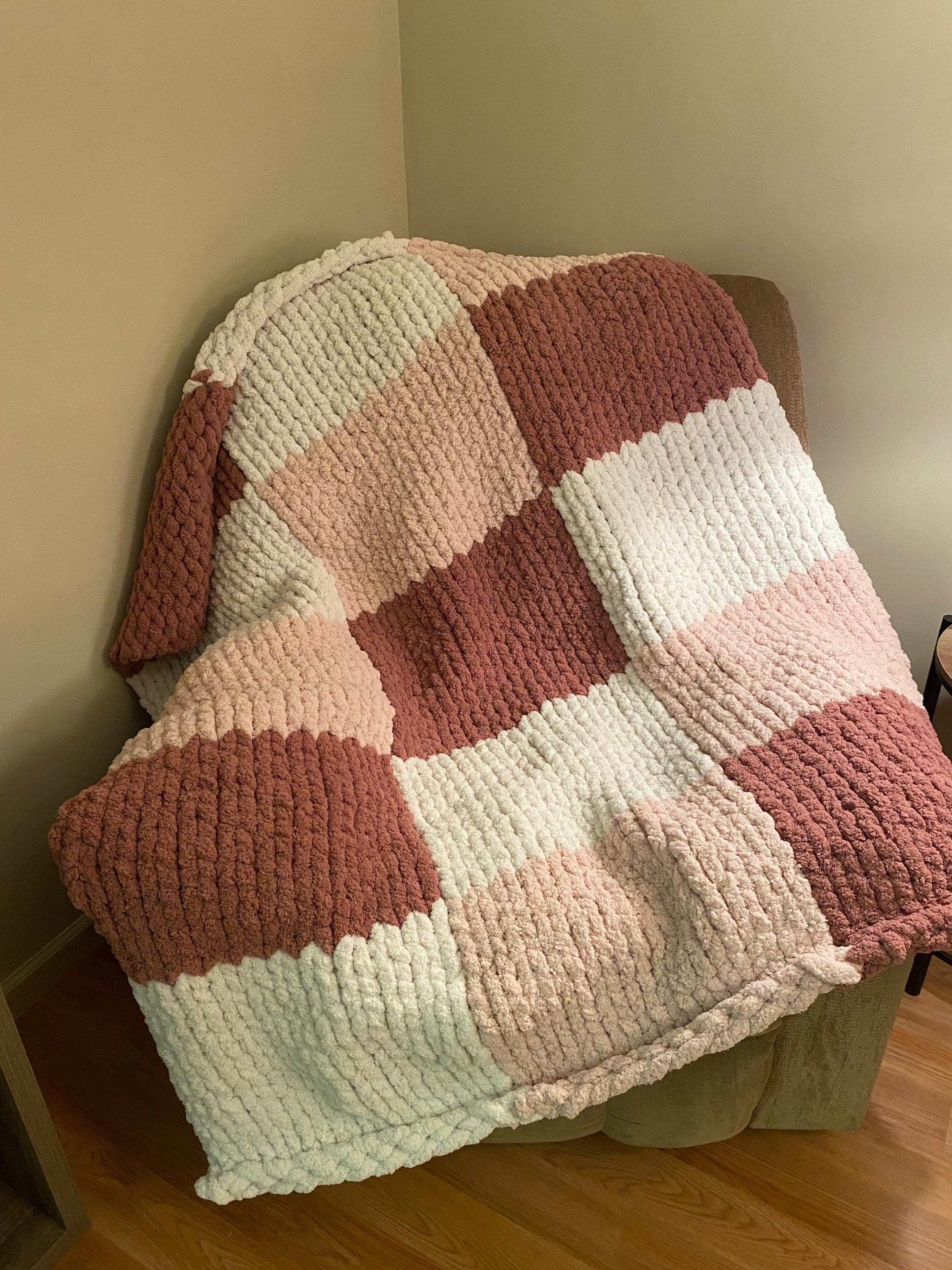 Handmade pink checkered chunky knit blanket
