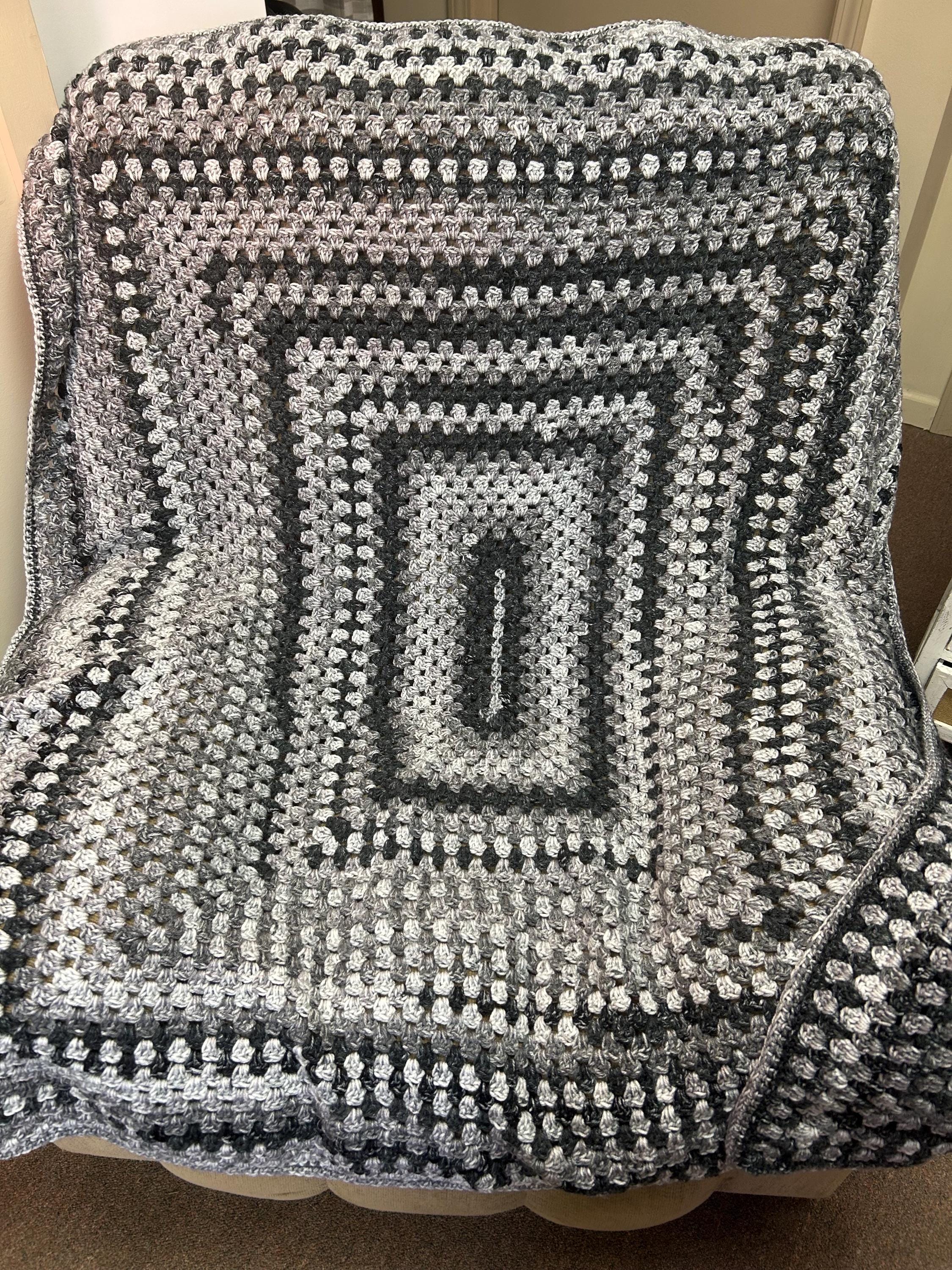 Handmade black/grey granny square crochet blanketApproximately 50x52in
